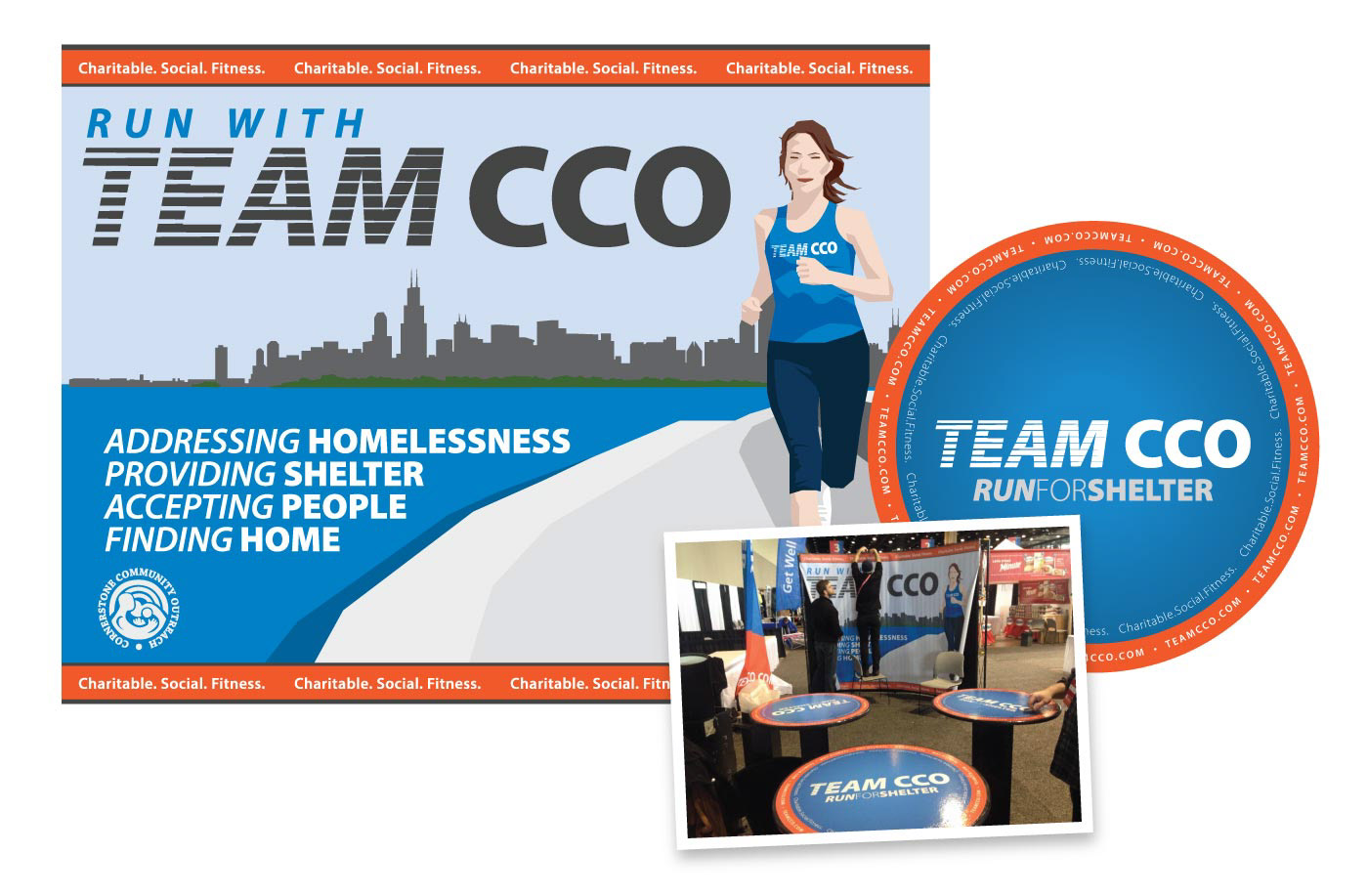 Trade show and branding for Team CCO. Team CCO is a fundraising arm of Cornerstone Community Outreach, a homeless shelter in Uptown Chicago.